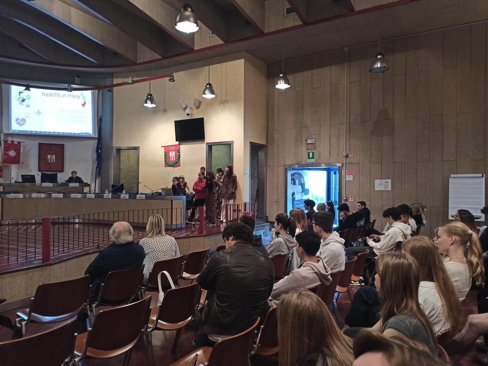 Bollaten kaupungin talolla pidetyt suomalaisten esitelmät. Italialaisilla olivat samat aiheet omasta näkökulmasta.